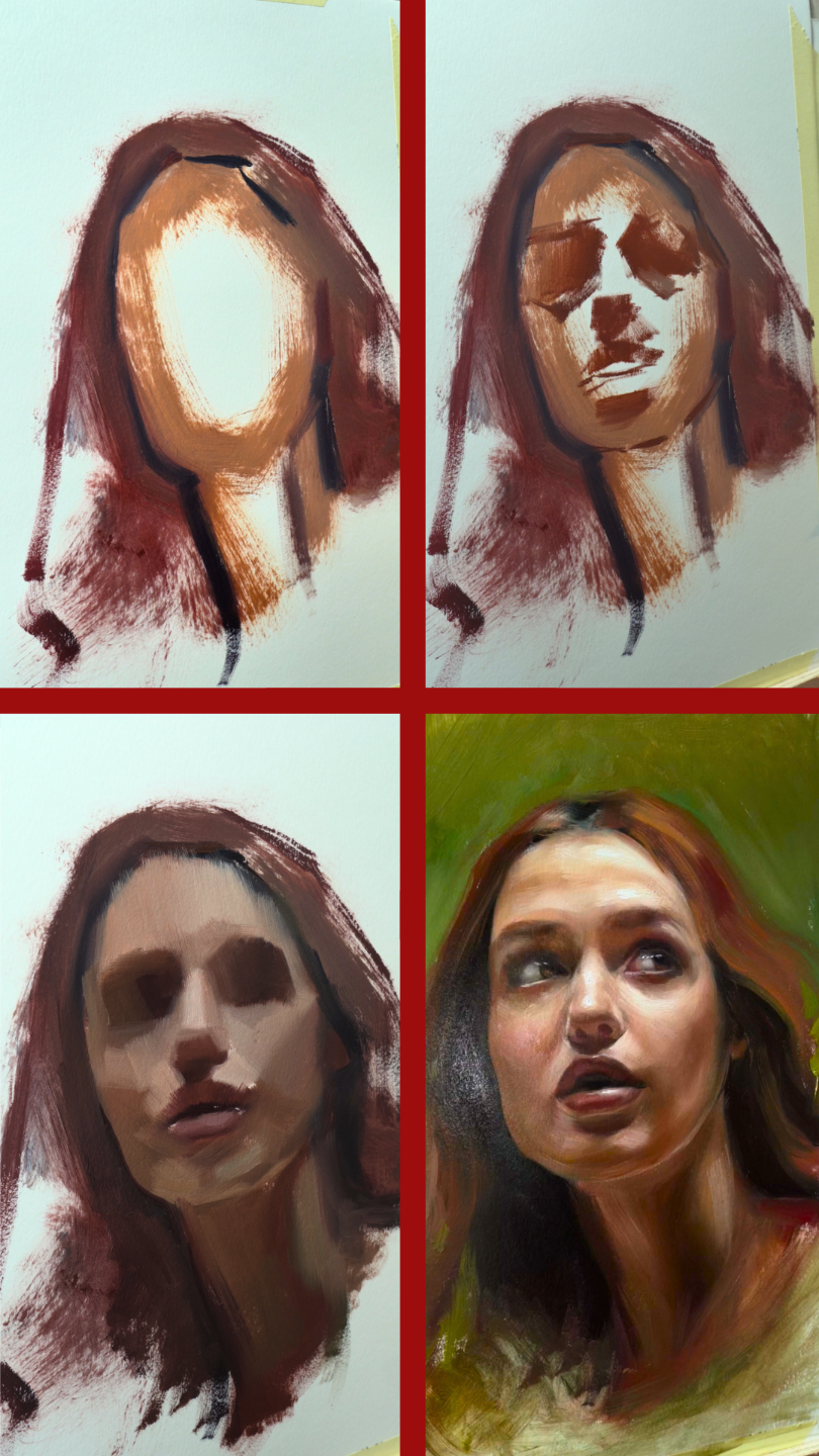 I’ll be working on a larger painting that includes multiple portraits, so you can see how the eyes are developed within a real piece, not as a standalone exercise.